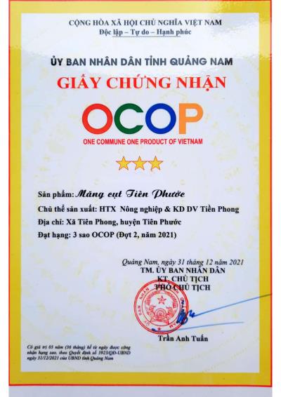 Sản phẩm do HTX Nông nghiệp và Kinh doanh Dịch vụ Tiền Phong (Tiên Phước) phát triển và đã đạt OCOP 3 sao cấp tỉnh năm 2021.